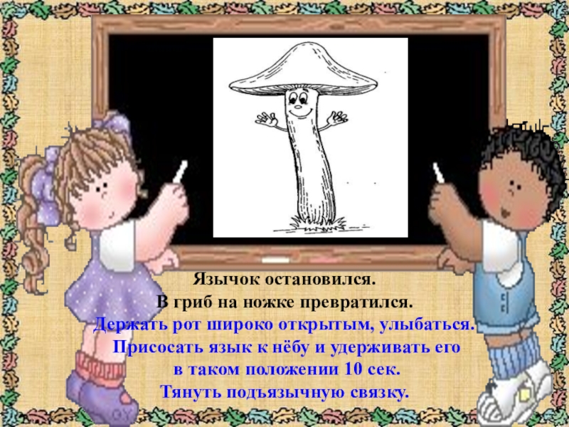 язык к нёбу и, удерживать его в таком положении 10 сек.