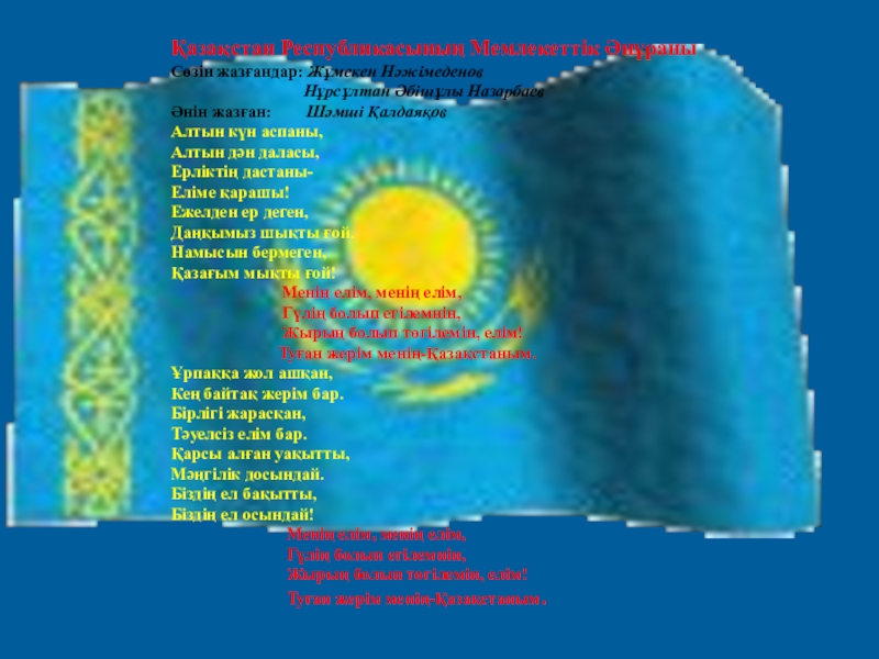 Слайд 4Қазақстан Республикасының Мемлекеттік Әнұраны