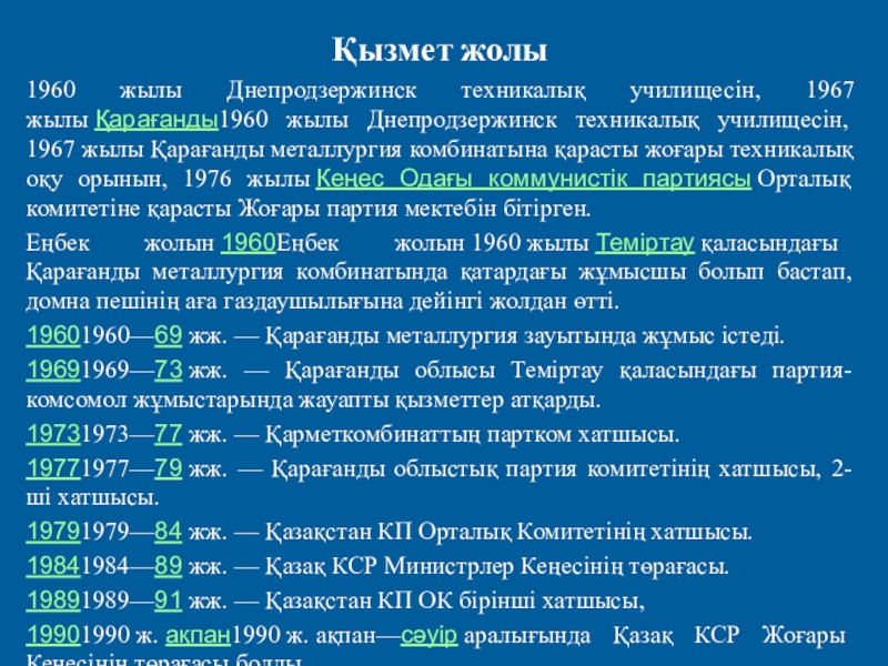 Слайд 9Қызмет жолы