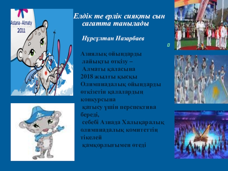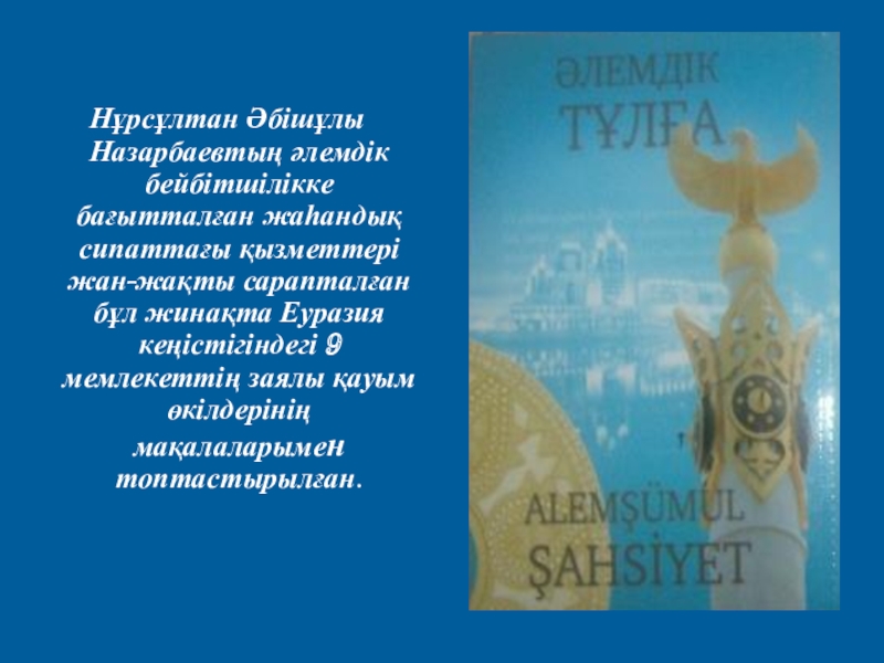 Слайд 22 Нұрсұлтан Әбішұлы Назарбаевтың әлемдік бейбітшілікке бағытталған жаһандық сипаттағы қызметтері жан-жақты