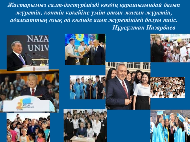 Слайд 34Жастарымыз салт-дәстүрімізді көздің қарашығындай бағып жүретін, көптің көкейіне үміт отын жағып