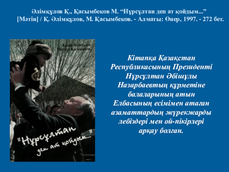 Әлімқұлов Қ., Қасымбеков М. “Нұрсұлтан деп ат қойдым...”