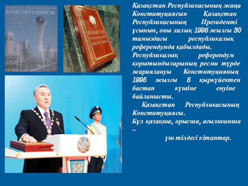 1995 жылғы 30 тамыздағы республикалық референдумда қабылдады.