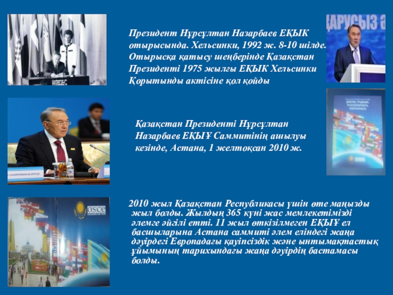 Назарбаевтың экономист және саясаткер ретіндегі жеке беделі елде қолайлы инвестициялықНазарбаевтың экономист және саясаткер ретіндегі жеке беделі елде қолайлы инвестициялық ахуалдың қалыптасуына, көптеген мемлекеттермен және халықаралық қаржыНазарбаевтың экономист және саясаткер ретіндегі жеке беделі елде қолайлы инвестициялық ахуалдың қалыптасуына, көптеген мемлекеттермен және халықаралық қаржы институттарымен қарқынды экономикалық ынтымақтасуға игі ықпал етті. Республикада ауылды дамытуға, кедейлікпен күресуге, тұрғын үй құрылысын дамытуға және т.с.с. бағытталған ірі-ірі әлеуметтік бағдарламаларды іске асыру басталды. Назарбаев индустриалды-инновациялықНазарбаевтың экономист және саясаткер ретіндегі жеке беделі елде қолайлы инвестициялық ахуалдың қалыптасуына, көптеген мемлекеттермен және халықаралық қаржы институттарымен қарқынды экономикалық ынтымақтасуға игі ықпал етті. Республикада ауылды дамытуға, кедейлікпен күресуге, тұрғын үй құрылысын дамытуға және т.с.с. бағытталған ірі-ірі әлеуметтік бағдарламаларды іске асыру басталды. Назарбаев индустриалды-инновациялық даму стратегиясын әзірледі,инвестициялықНазарбаевтың экономист және саясаткер ретіндегі жеке беделі елде қолайлы инвестициялық ахуалдың қалыптасуына, көптеген мемлекеттермен және халықаралық қаржы институттарымен қарқынды экономикалық ынтымақтасуға игі ықпал етті. Республикада ауылды дамытуға, кедейлікпен күресуге, тұрғын үй құрылысын дамытуға және т.с.с. бағытталған ірі-ірі әлеуметтік бағдарламаларды іске асыру басталды. Назарбаев индустриалды-инновациялық даму стратегиясын әзірледі,инвестициялық және инновациялық қорлар құрылды. Дүниежүзілік сарапшыларарасында «қазақстандық үлгі» термині пайда болды. Қысқа мерзім ішінде халықаралық ынтымақтастық тұжырымдамасын қалыптастырды. Оның көптеген бастамалары кең халықаралық жаңғырық тапты әрі мойындалды. Мәселен, Семей ядролық полигонын жабу, ядролық держава мәртебесінен бас тарту, жаһандық және өңірлік қауіпсіздікті қамтамасыз ету жөніндегі дәйекті қызмет, т.б. Назарбаев ТМДНазарбаевтың экономист және саясаткер ретіндегі жеке беделі елде қолайлы инвестициялық ахуалдың қалыптасуына, көптеген мемлекеттермен және халықаралық қаржы институттарымен қарқынды экономикалық ынтымақтасуға игі ықпал етті. Республикада ауылды дамытуға, кедейлікпен күресуге, тұрғын үй құрылысын дамытуға және т.с.с. бағытталған ірі-ірі әлеуметтік бағдарламаларды іске асыру басталды. Назарбаев индустриалды-инновациялық даму стратегиясын әзірледі,инвестициялық және инновациялық қорлар құрылды. Дүниежүзілік сарапшыларарасында «қазақстандық үлгі» термині пайда болды. Қысқа мерзім ішінде халықаралық ынтымақтастық тұжырымдамасын қалыптастырды. Оның көптеген бастамалары кең халықаралық жаңғырық тапты әрі мойындалды. Мәселен, Семей ядролық полигонын жабу, ядролық держава мәртебесінен бас тарту, жаһандық және өңірлік қауіпсіздікті қамтамасыз ету жөніндегі дәйекті қызмет, т.б. Назарбаев ТМД, ОАО, Кеден одағыНазарбаевтың экономист және саясаткер ретіндегі жеке беделі елде қолайлы инвестициялық ахуалдың қалыптасуына, көптеген мемлекеттермен және халықаралық қаржы институттарымен қарқынды экономикалық ынтымақтасуға игі ықпал етті. Республикада ауылды дамытуға, кедейлікпен күресу
