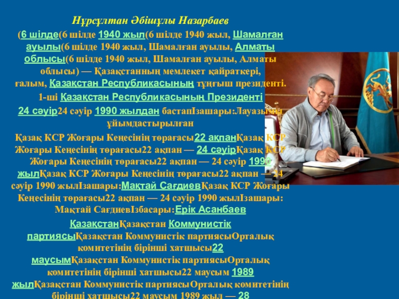 Слайд 6Нұрсұлтан Әбiшұлы Назарбаев