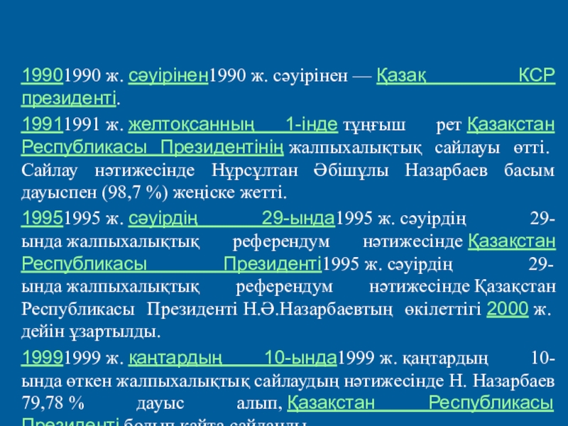 Слайд 1019901990 ж. сәуірінен1990 ж. сәуірінен — Қазақ КСР президенті.
