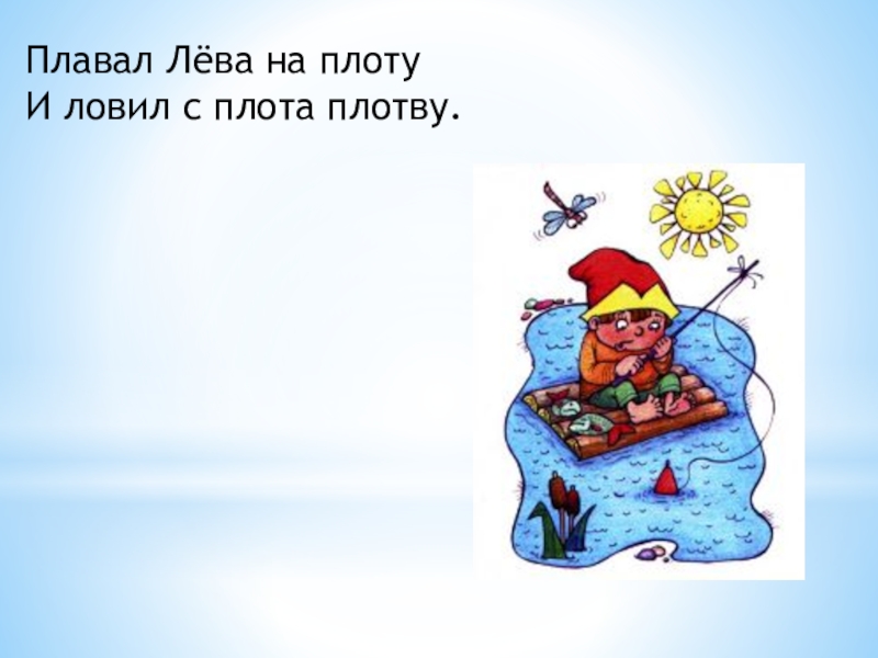 Слайд 6Плавал Лёва на плоту И ловил с плота плотву.