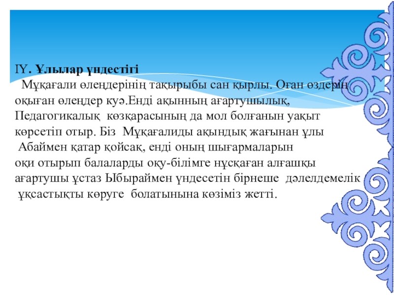 көрсетіп отыр. Біз Мұқағалиды ақындық жағынан ұлы