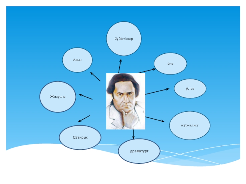 7. Жазушы ( 4 әңгіме, «Марусяның тауы», «Құлпытас», «Әже», «Қос қарлығаш», «Жыл құстары » 2 повесі бар)