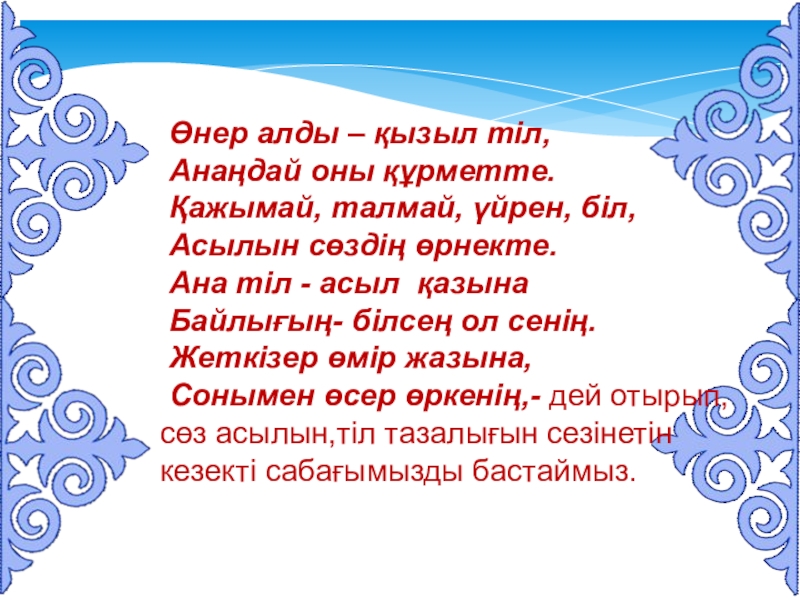 Слайд 1Сабақтың тақырыбы: Әр өлеңі – бір әлем