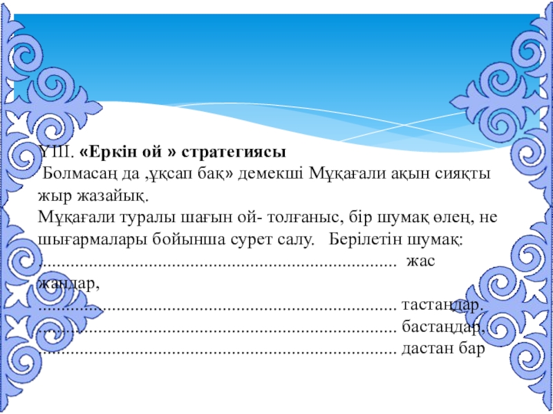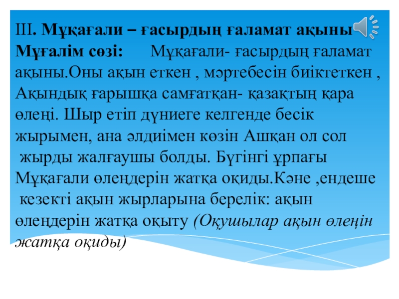 Слайд 10ІІІ. Мұқағали – ғасырдың ғаламат ақыны