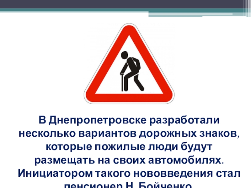 Слайд 7В Днепропетровске разработали несколько вариантов дорожных знаков, которые пожилые люди будут