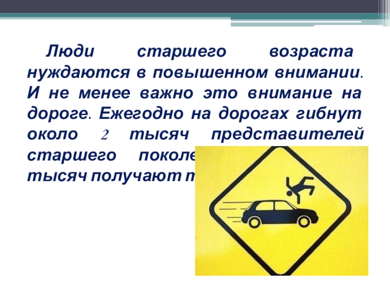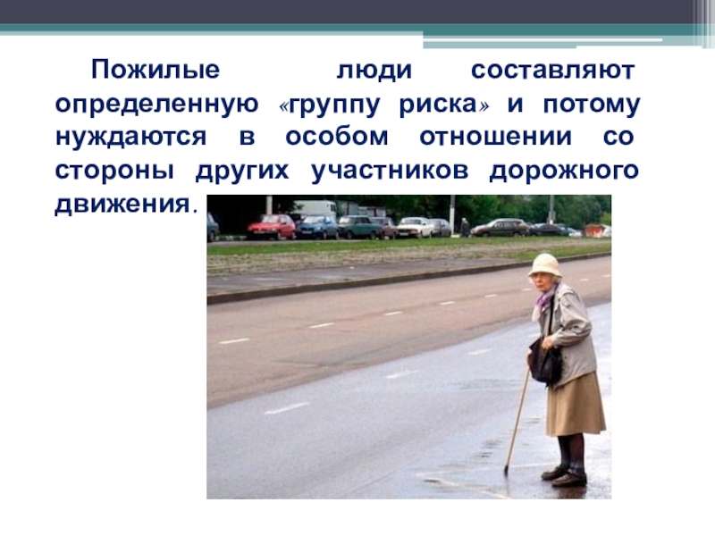 Пожилые люди составляют определенную «группу риска» и потому нуждаются в особом отношении со стороны других участников дорожного