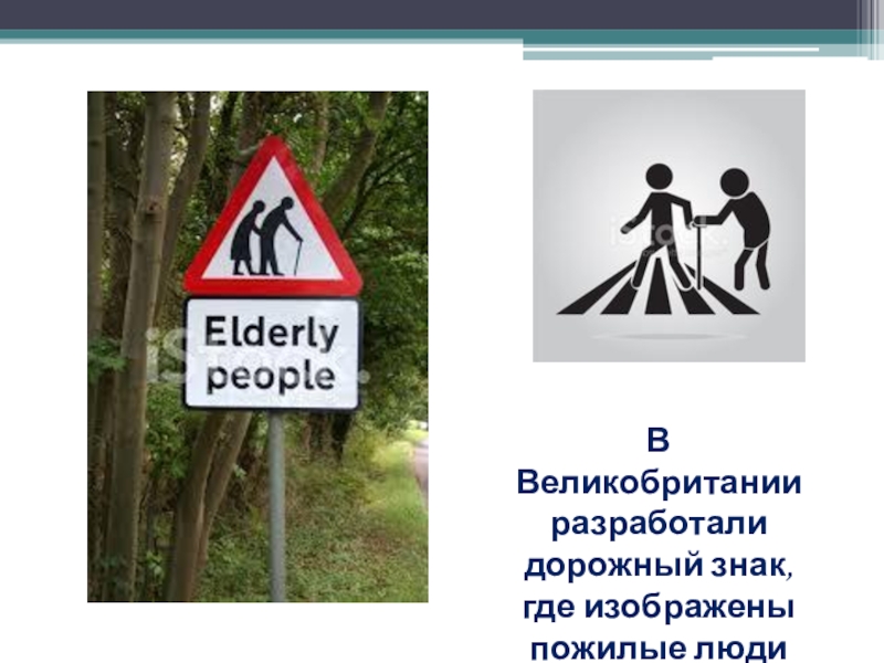 Слайд 8В Великобритании разработали дорожный знак, где изображены пожилые люди