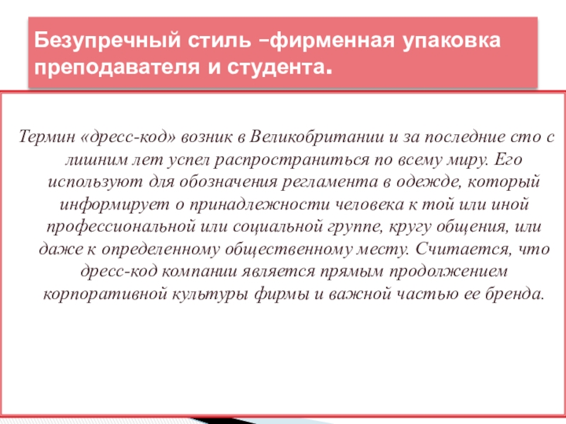 Безупречный стиль –фирменная упаковка преподавателя и студента.