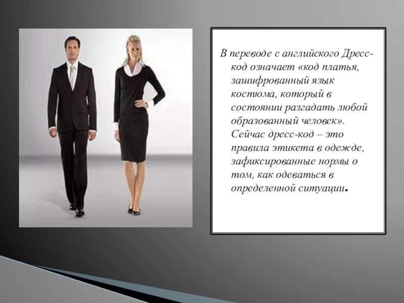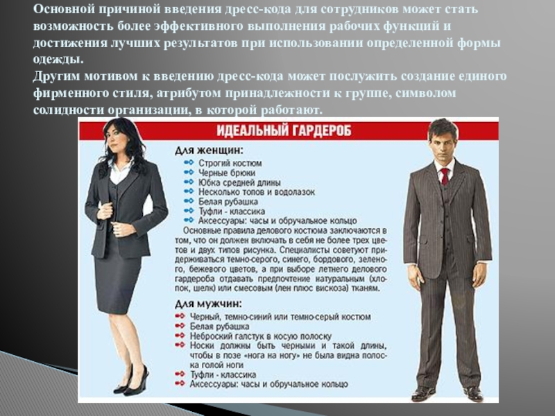 Есть давно созданный деловой этикет, признанный во всем мире и во многих крупных деловых корпорациях. И опыт успеха этих компаний доказывает, что дресс-код лишним не является. Для меня дресс-код – это опрятность, в первую очередь.