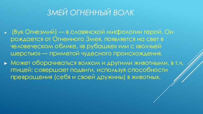 (Вук Огнезмий) — в славянской мифологии герой. Он рождается