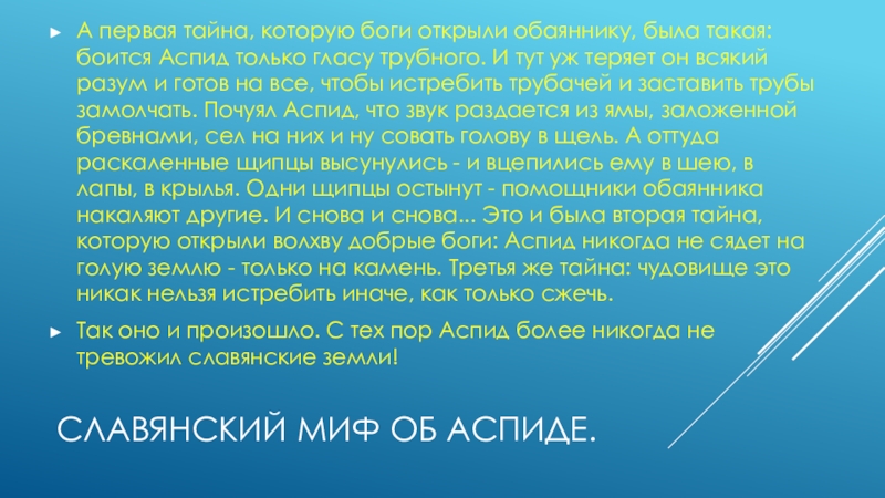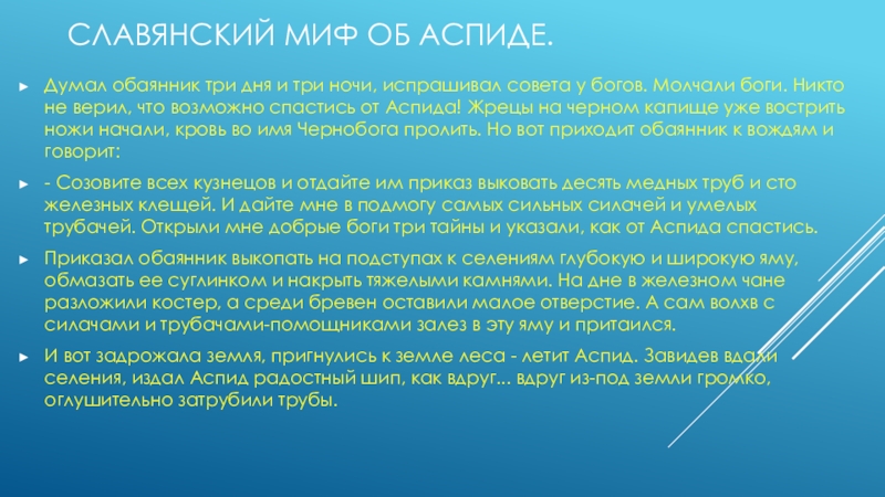 Слайд 5Славянский миф об аспиде.
