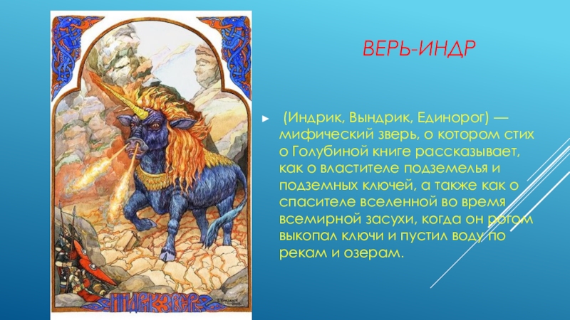 (Индрик, Вындрик, Единорог) — мифический зверь, о котором стих о Голубиной