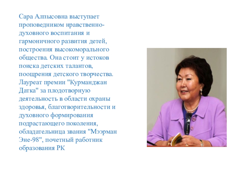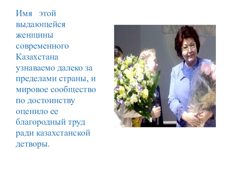 страны, и мировое сообщество по достоинству оценило ее благородный труд ради казахстанской детворы.