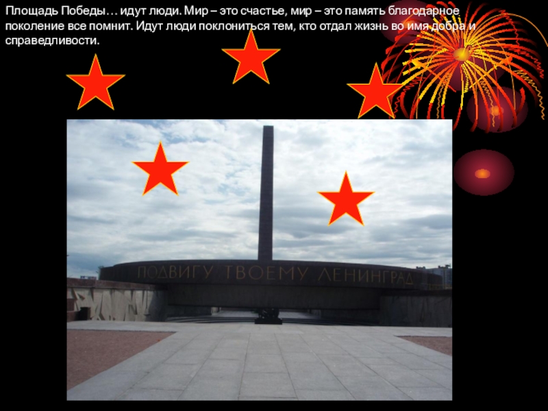 Слайд 34Площадь Победы… идут люди. Мир – это счастье, мир – это