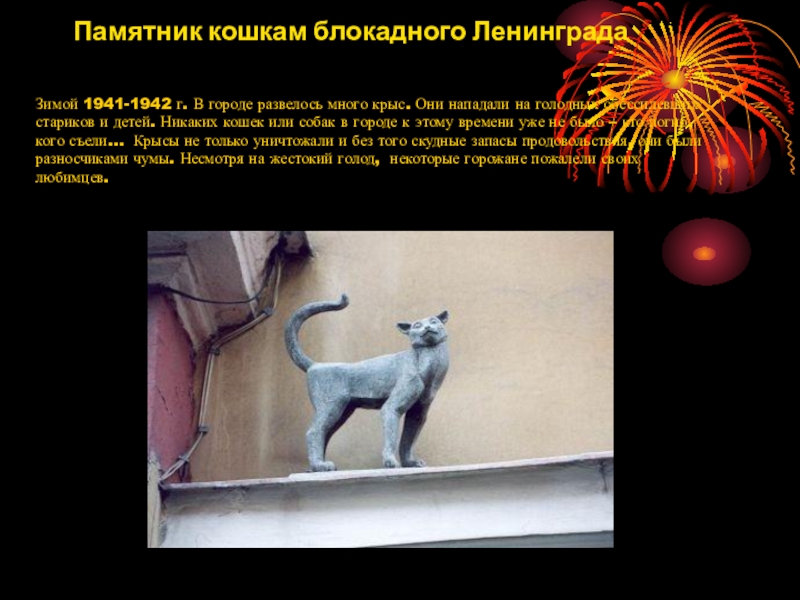 Слайд 19Памятник кошкам блокадного Ленинграда