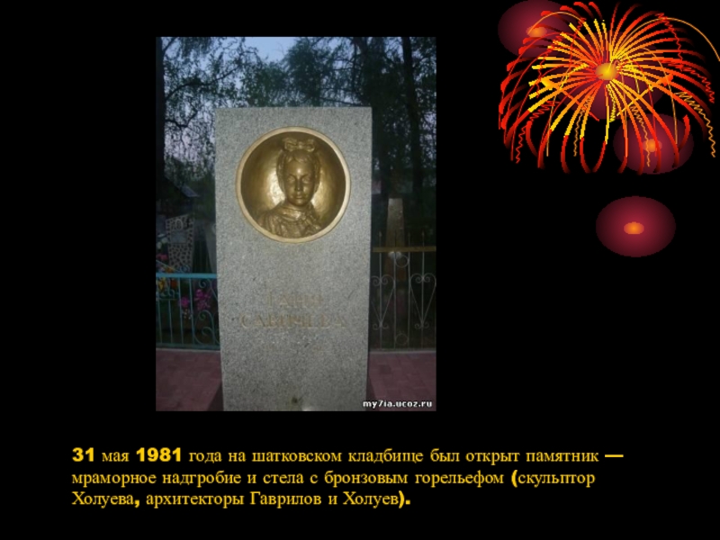 Слайд 3131 мая 1981 года на шатковском кладбище был открыт памятник —