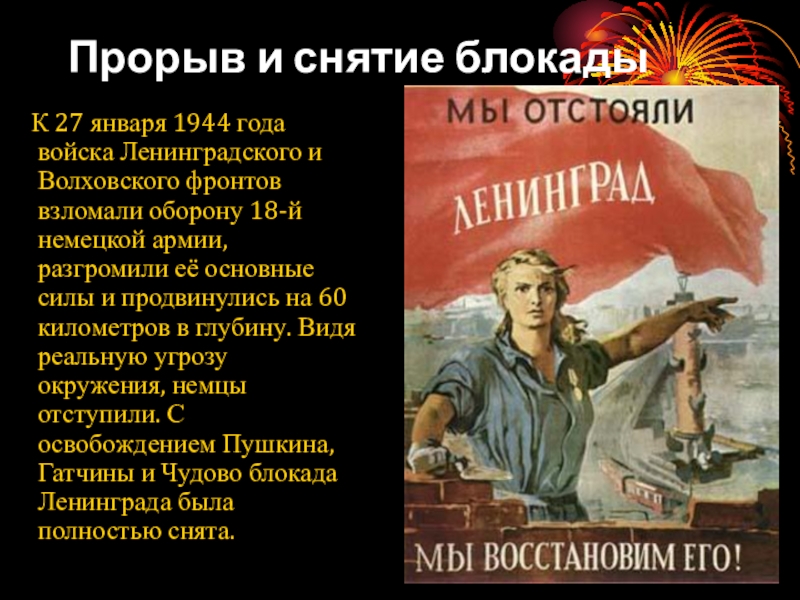Слайд 40Блокада Ленинграда - трагичная и великая страница российской истории, унесшая более 2