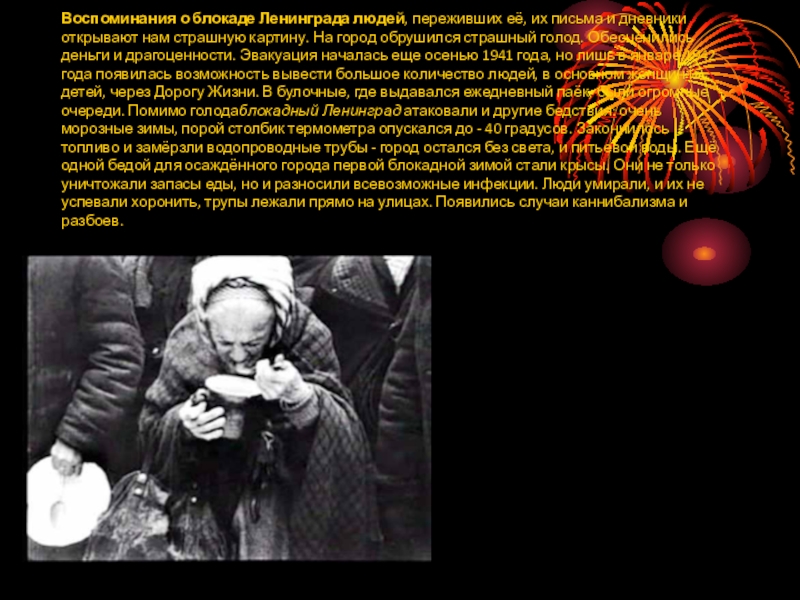 Слайд 20Из воспоминаний ленинградцев, переживших блокаду: