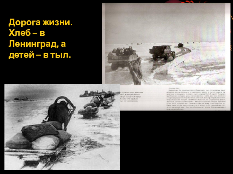 Слайд 22Дорога жизни. Хлеб – в Ленинград, а детей – в тыл.
