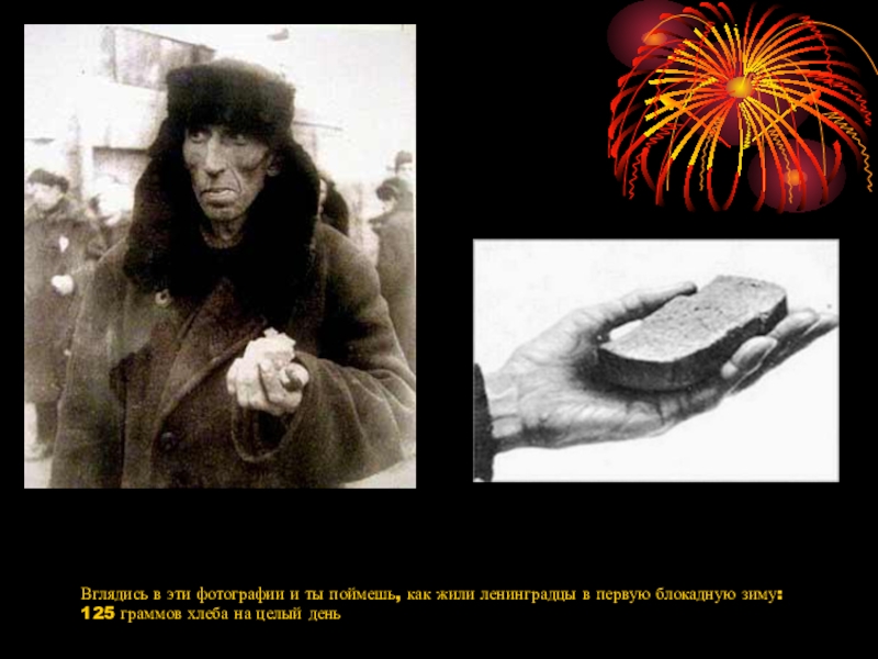 Слайд 17Вглядись в эти фотографии и ты поймешь, как жили ленинградцы в