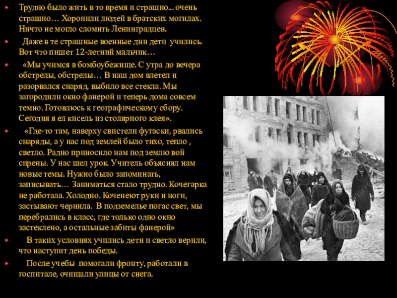 людей в братских могилах. Ничто не могло сломить Ленинградцев.