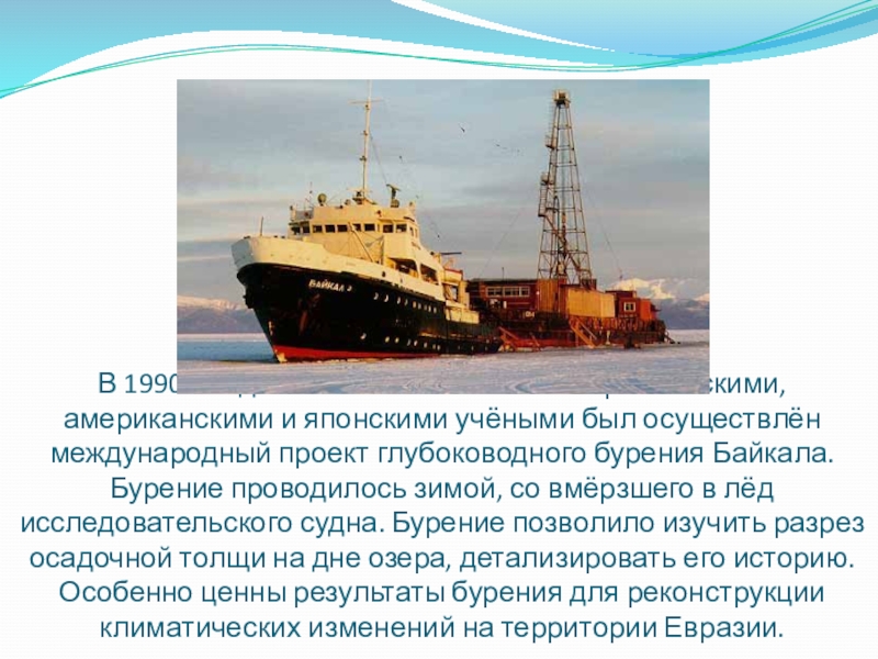 Слайд 19В 1990-х годах на Байкале совместно российскими, американскими и японскими учёными