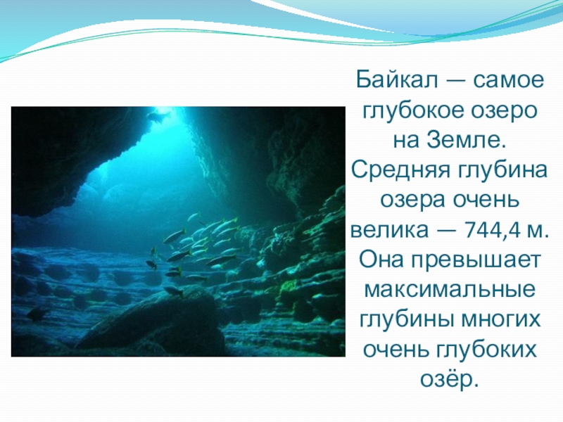 Слайд 6Байкал — самое глубокое озеро на Земле. Средняя глубина озера очень