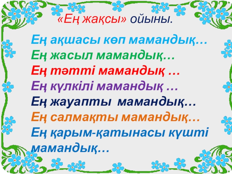 «Ең жақсы» ойыны. Ең ақшасы көп мамандық…Ең жасыл мамандық…Ең тәтті мамандық … Ең күлкілі мамандық …Ең жауапты