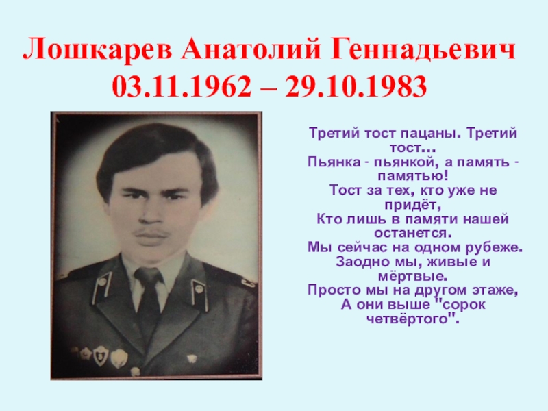 Слайд 4Лошкарев Анатолий Геннадьевич