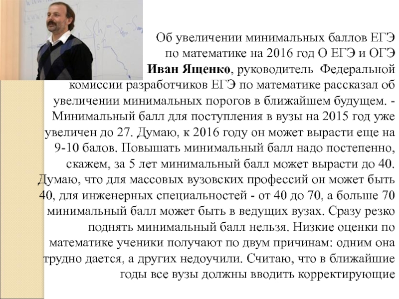 Слайд 13Об увеличении минимальных баллов ЕГЭ