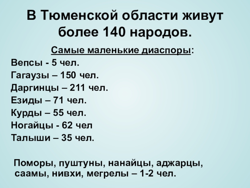 Слайд 8В Тюменской области живут более 140 народов.
