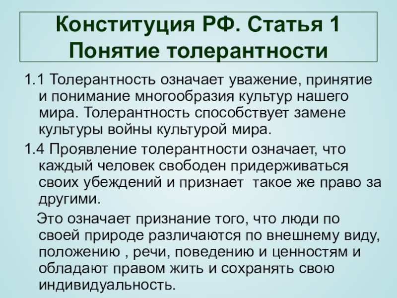 1.1 Толерантность означает уважение, принятие