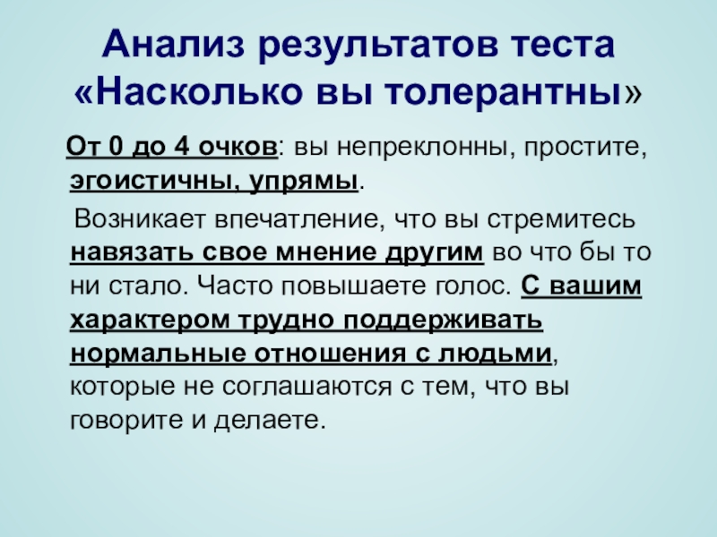 Слайд 4Анализ результатов теста «Насколько вы толерантны»