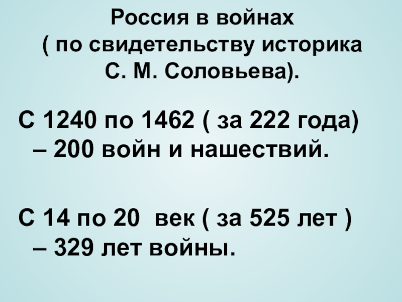 ( за 222 года) – 200 войн и нашествий.
