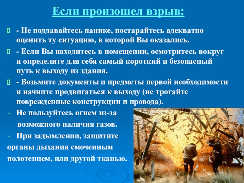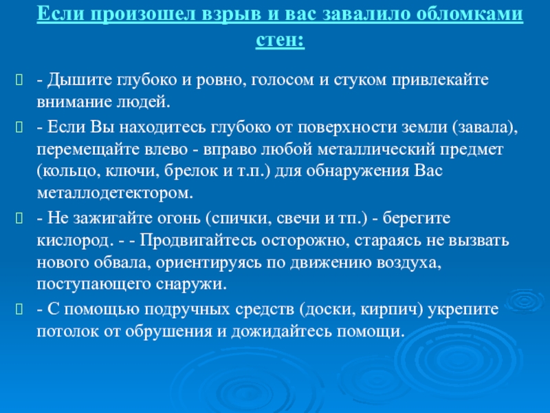 Слайд 25Если произошел взрыв и вас завалило обломками стен: