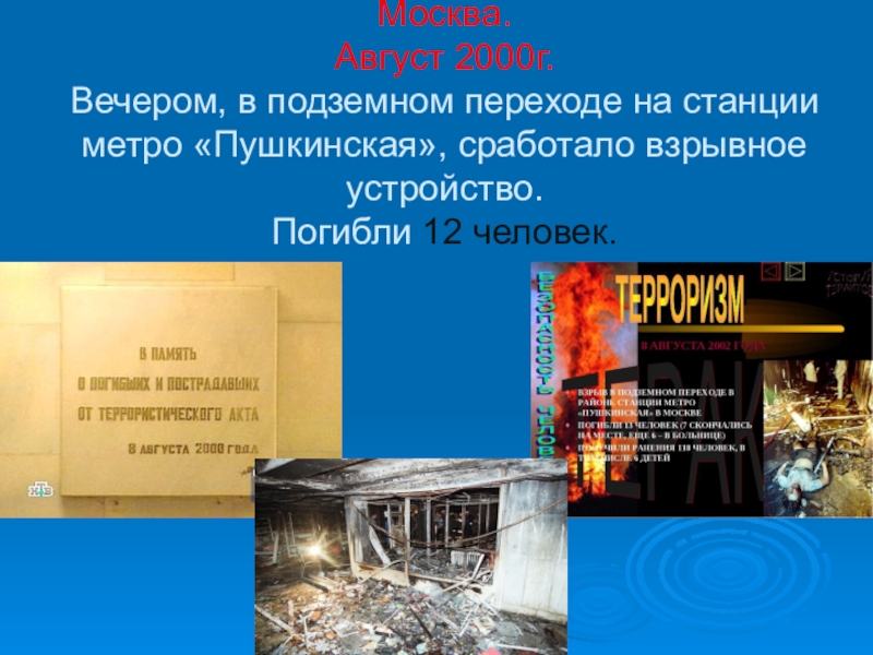 Вечером, в подземном переходе на станции метро «Пушкинская», сработало взрывное