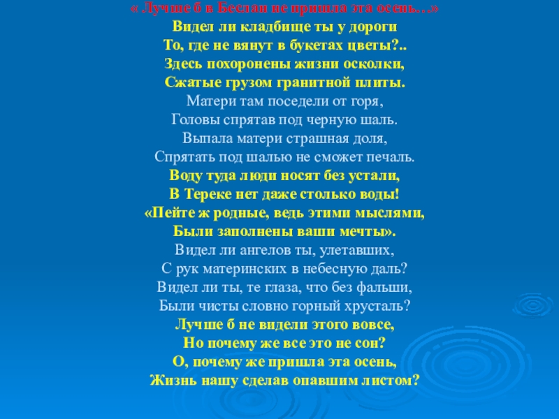 Слайд 16« Лучше б в Беслан не пришла эта осень…»