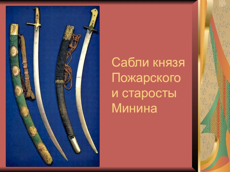 Слайд 7Сабли князя Пожарского и старосты Минина