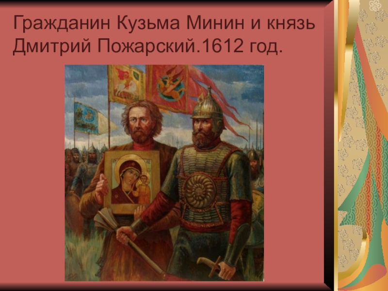 Слайд 6Гражданин Кузьма Минин и князь Дмитрий Пожарский.1612 год.
