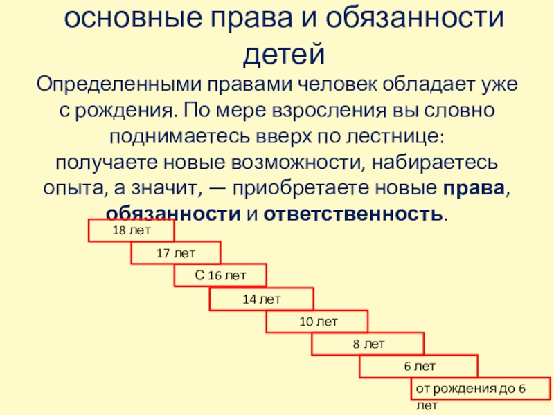 Определенными правами человек обладает уже с рождения. По мере взросления вы словно поднимаетесь вверх по лестнице: