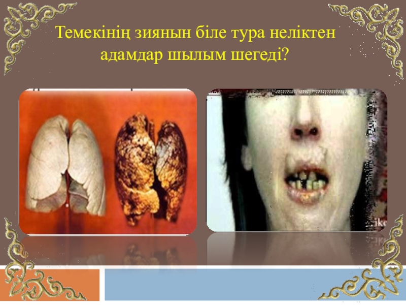 Слайд 5Темекінің зиянын біле тура неліктен адамдар шылым шегеді?