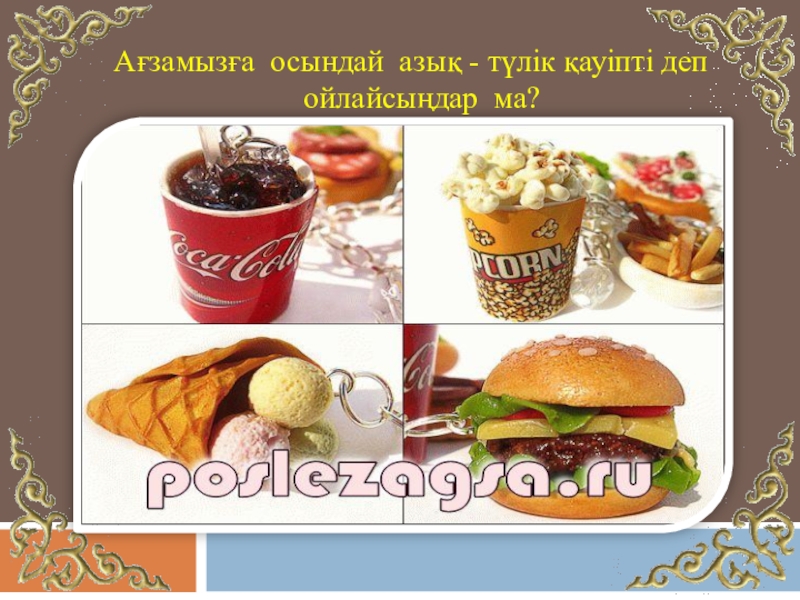 Слайд 15Ағзамызға осындай азық - түлік қауіпті деп