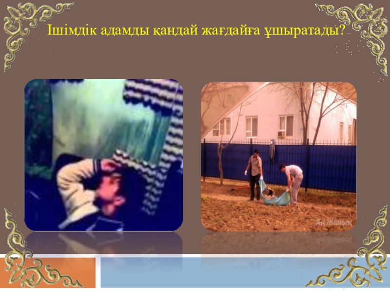 Слайд 9Ішімдік адамды қандай жағдайға ұшыратады?